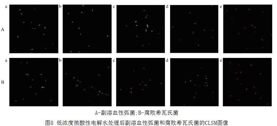 图8 低浓度微酸性电解水处理后副溶血性弧菌和腐败希瓦氏菌的CLSM图像