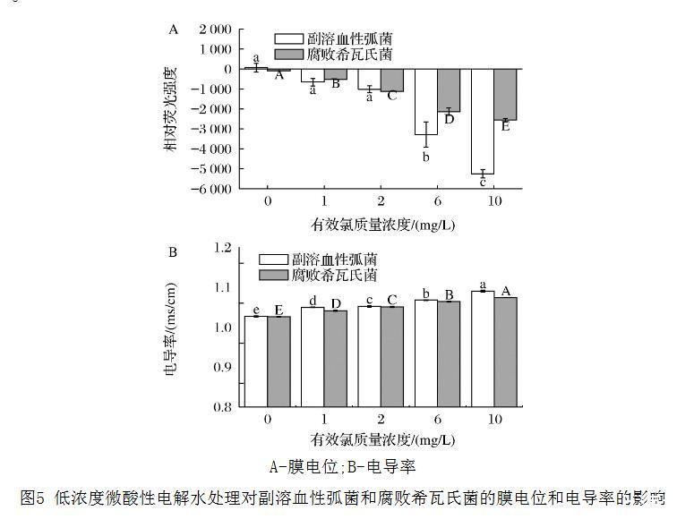 2.5 低浓度微酸性电解水处理对细菌膜电位和电导率的影响