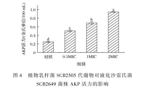 图4植物乳杆菌SCB2505代谢物对液化沙雷氏菌SCB2649菌株AKP活力的影响