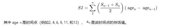 9.计算每个孔的生存积分(SI)。SI定义为生存曲线下的面积,可以通过以下公式估算: