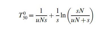 第一项是第一个存活突变体出现的随机等待时间,第二项是随后增长至50%存在的时间。对于小值uN<0.1,第一项主导,固定可能慢。对于大值uN>1,第二项主导,固定可快,约100-1000代,s在0.1-0.01之间(图6)。在此背景下,值得注意的是几种抗生素的亚最小抑制浓度水平,最显著为氟喹诺酮类,已显示增加细菌突变率,可能减少等待时间从而增加突变体接管速率。