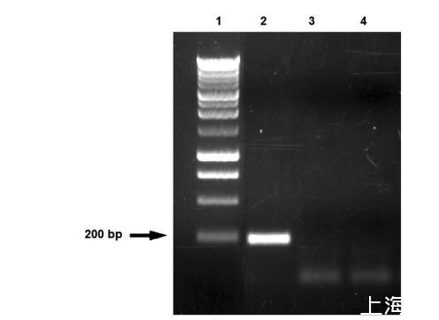 图5采用adhE引物获得的PCR扩增产物。第1泳道为1 kb Ladder Perfect Plus分子量标准(Eurx公司,格但斯克,波兰);第2泳道为Lb.florum DSM 22689的扩增产物;第3泳道显示Lb.plantarum FPL的扩增产物;第4泳道为Lb.plantarum NRRL B-4496