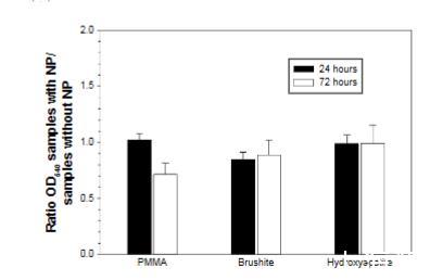 图5含有纳米颗粒的骨水泥的MTT测定,表示为含有对羟基苯甲酸酯纳米颗粒的样品与对照的OD540比值
