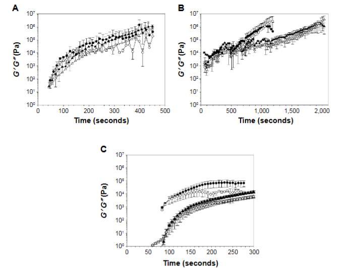 有机纳米颗粒对骨水泥凝固动力学可能的影响通过混合后骨水泥面团的流变特性演变研究(图8)。在所有情况下,存储模量(G')大于损耗模量(G");模式遵循初始快速速率的单调增加,减慢达到平台。对于每种类型的骨水泥,存在对羟基苯甲酸酯纳米颗粒需要稍长的凝固时间(定义为面团达到恒定流变特性所需的时间)。也明显PMMA是最快凝固的骨水泥类型(庆大霉素和含对羟基苯甲酸酯骨水泥分别约150和300秒),而羟基磷灰石需要最长(庆大霉素和含对羟基苯甲酸酯骨水泥分别约1,000和2,000秒)。