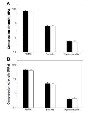 图6含有0%和有机纳米颗粒的骨水泥的抗压强度:新鲜制备和PBS中浸泡7天后