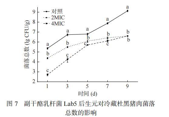 图 7 副干酪乳杆菌Lab5后生元对冷藏杜黑猪肉菌落总数的影响