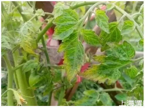 番茄真菌性的叶霉病,叶片背面有明显的霉层