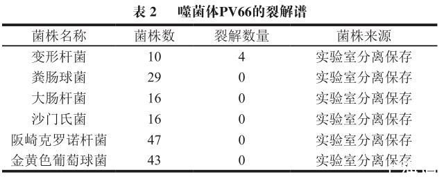 本研究从四川某屠宰场采集的污水中分离到1株烈性噬菌体,透射电镜发现噬菌体为罕见的C3形态噬菌体。最佳MOI为0.1,一步生长曲线表明噬菌体的潜伏期短,裂解量高,对温度的耐受值最高为65℃,pH值耐受范围2~13,对紫外线照射及有机试剂耐受性良好,且对细菌的裂解效果较好。这些性质与之前报道的变形杆菌噬菌体特性相差不大,表明噬菌体PV66具有很好的应用价值。